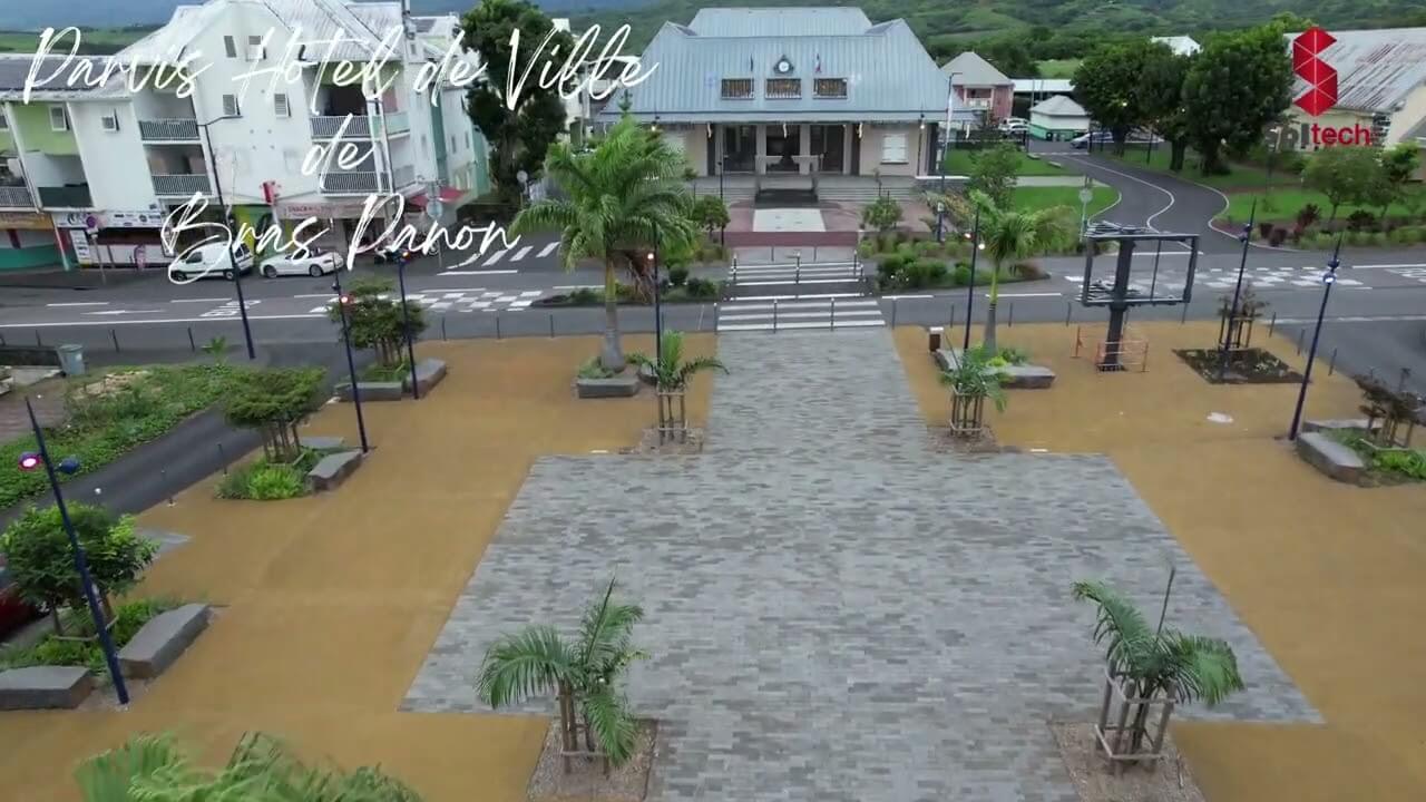 Remettre à neuf la place Michel Debré à Bras-Panon. La maîtrise d’œuvre souhaitait retrouver des qualités urbaines perdues, voire en imaginer de nouvelles, basées sur les orientations suivantes : l'absorption des eaux pluviales et la limitation de l’impact de la chaleur.