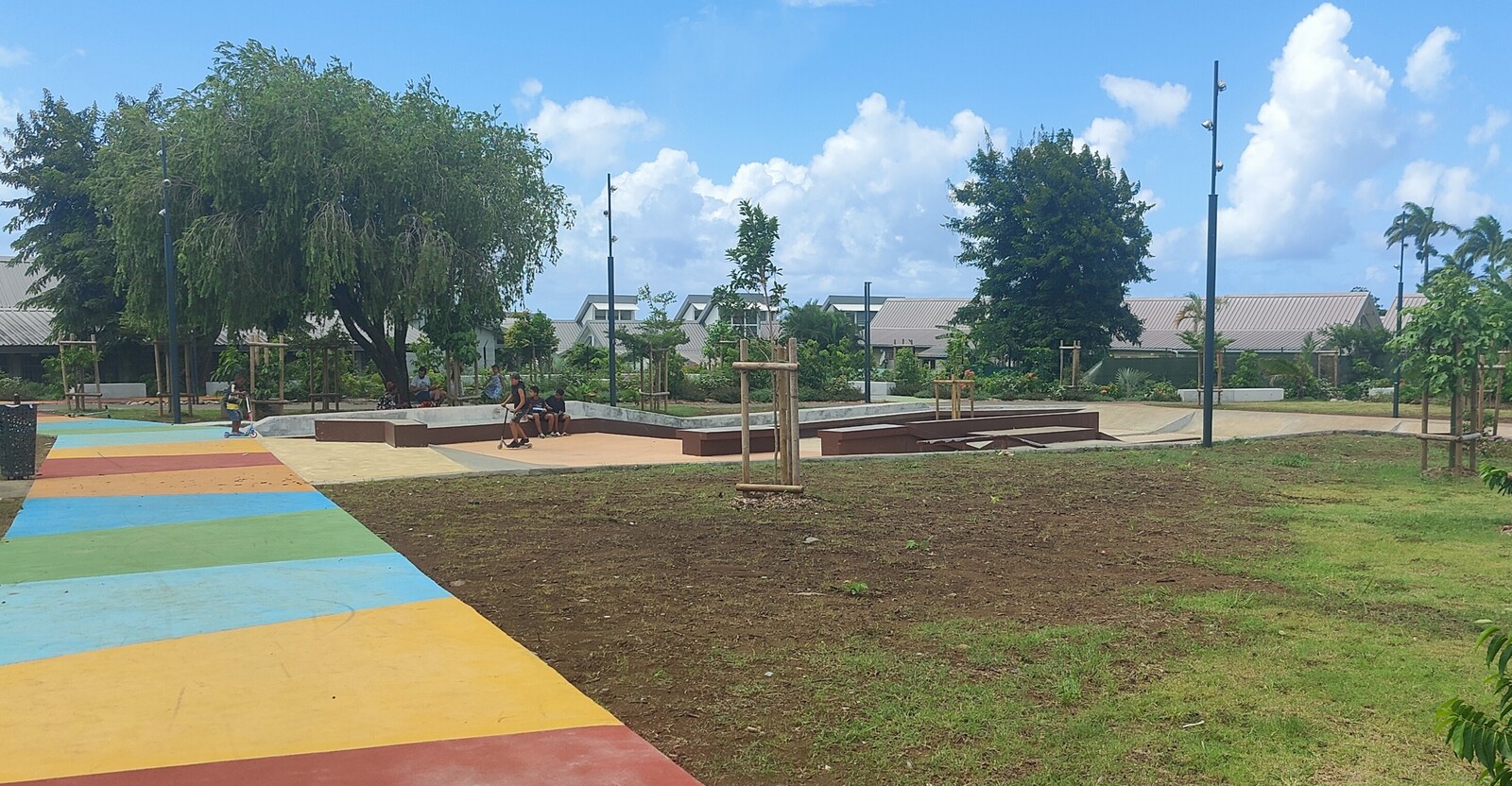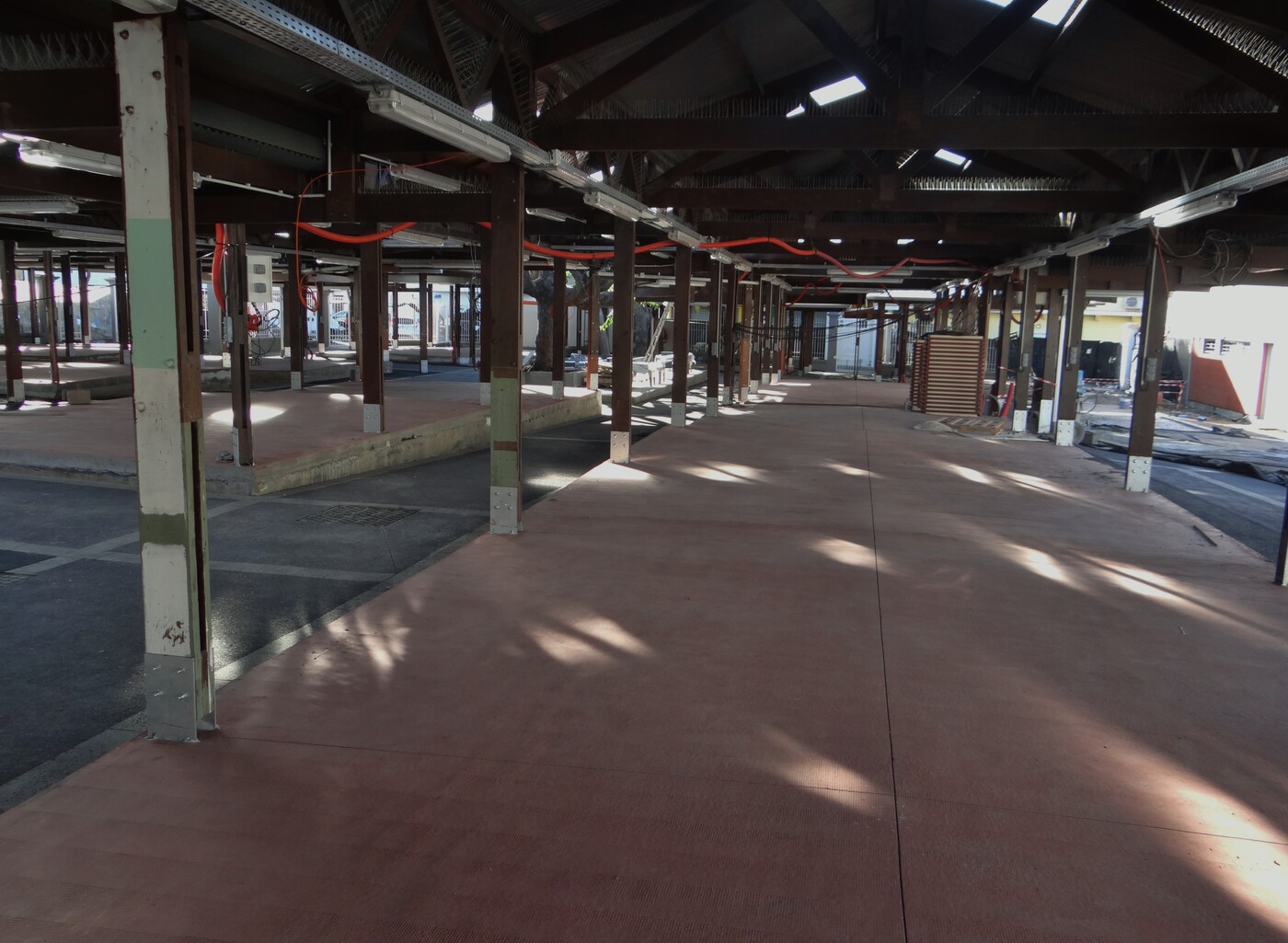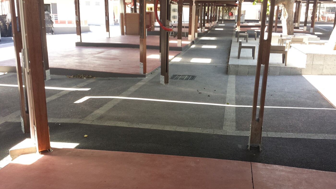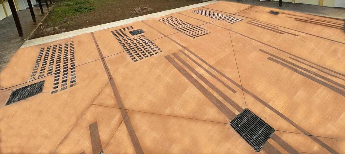 Le béton balayé coloré est une variante esthétique du béton balayé classique. Il est obtenu par l’application d’un durcisseur coloré en surface sur béton frais, puis structuré à l’aide d’un balai à brins rigides qui crée des stries parallèles. Cette finition combine les qualités techniques du béton balayé (adhérence, résistance) à un rendu visuel valorisant grâce à la coloration.