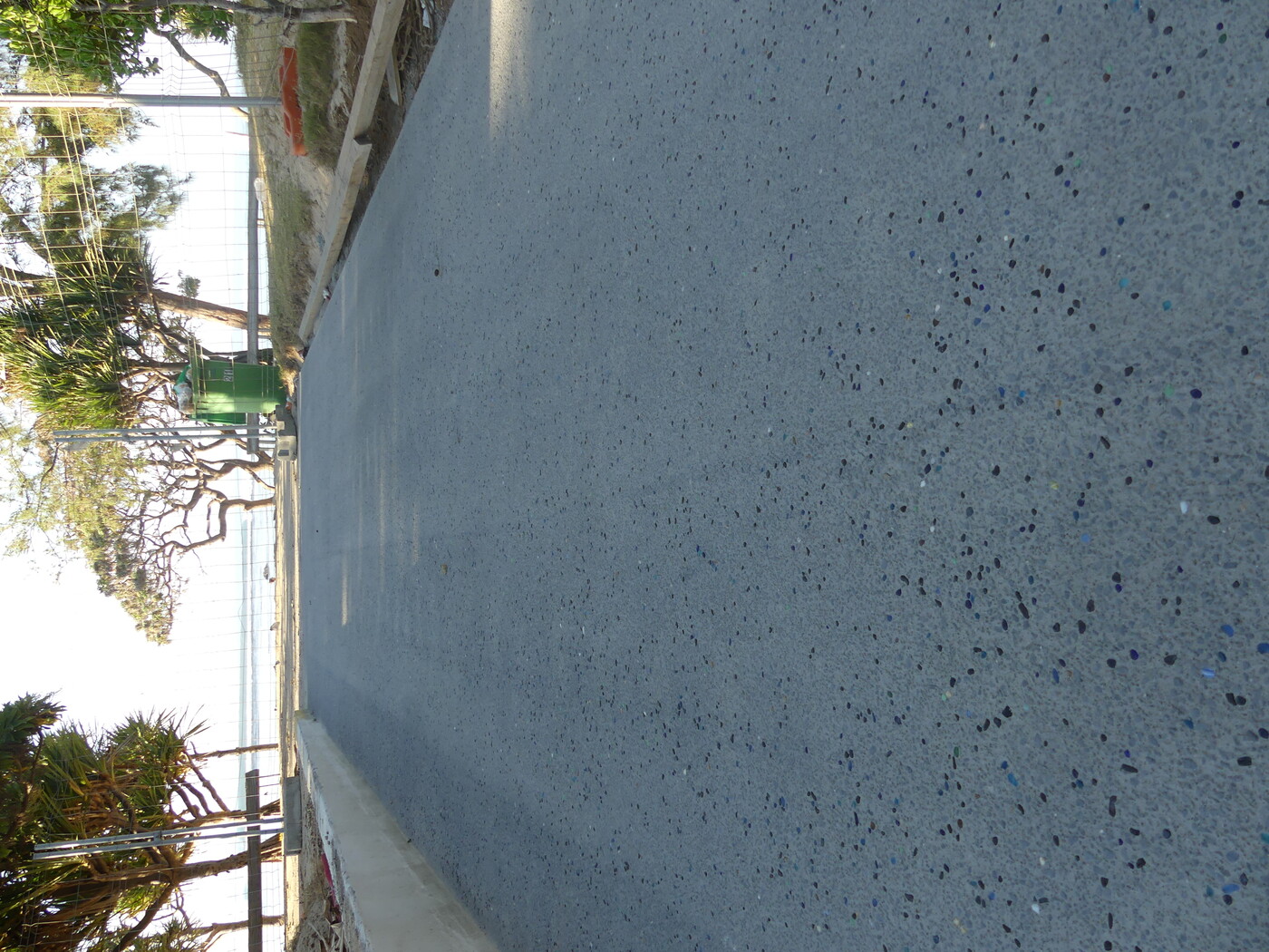 Le béton brossé est une alternative écologique au béton désactivé. Après pulvérisation du désactivant, la laitance est enlevée à sec à l’aide de brosses spécifiques montées sur machine, sans eau, sans arrachement de granulats. Une aspiration simultanée permet de récupérer intégralement les résidus (laitance, sable, désactivant), stockés en sacs pour traitement. Ce procédé garantit un rendu régulier, avec une surface légèrement rugueuse et naturelle, sans pollution liquide ni résidus dispersés.