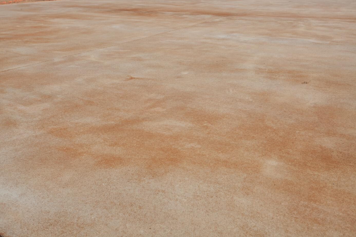 Le processus d’oxydation progressive teinte le sol de nuances brun-orangé, évoquant l’acier Corten et créant un rendu vivant, chaud et authentique.