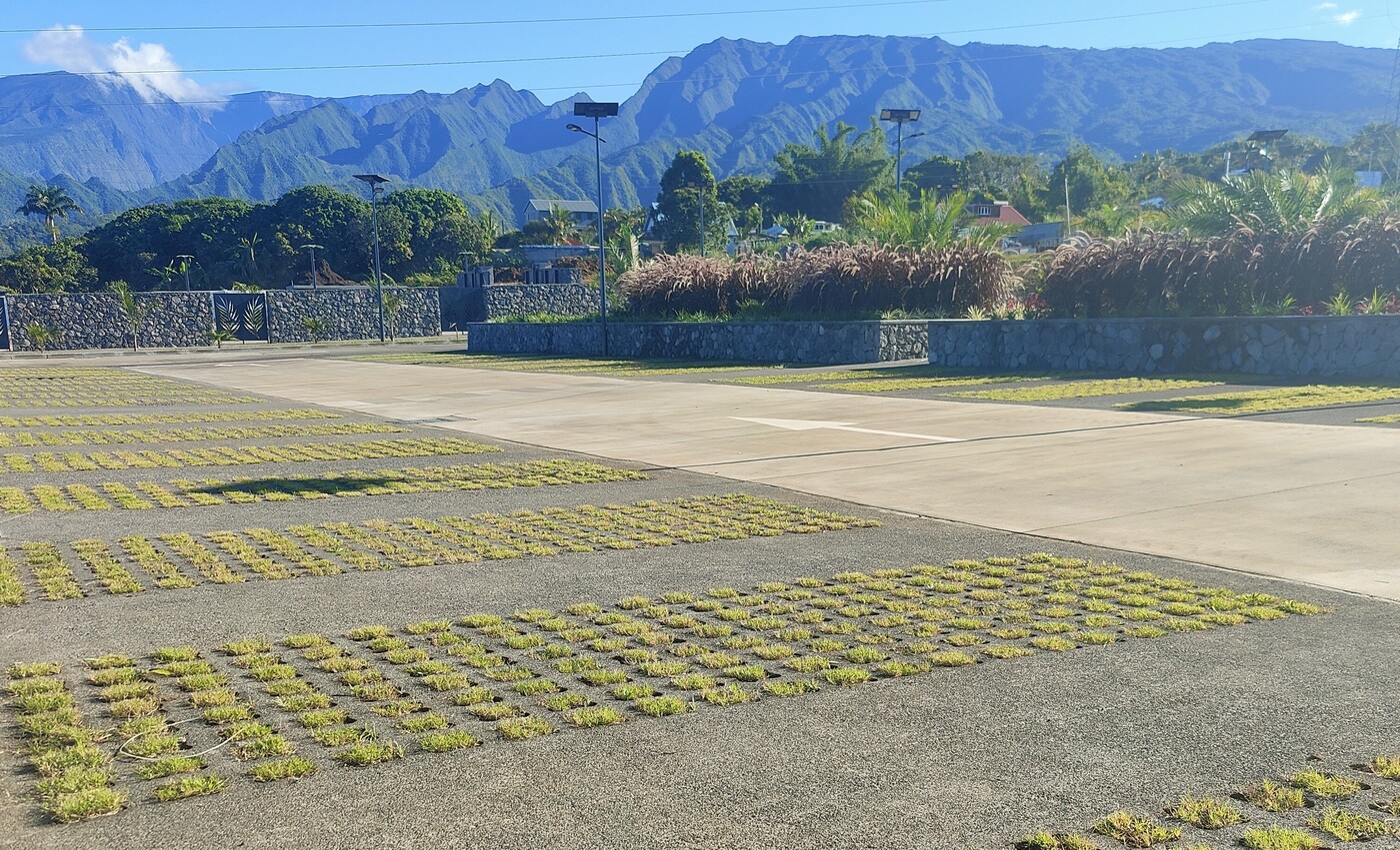 Le béton végétalisé désactivé est un procédé combiné qui associe une structure alvéolaire végétalisable à une finition désactivée sur la surface minérale. Coulé en place avec un calepinage spécifique, ce béton possède des alvéoles engazonnés ou remplis de granulats drainants, tandis que les parties circulables présentent une finition désactivée laissant apparaître les granulats. Il concilie écologie, fonctionnalité et esthétisme, tout en répondant aux exigences de perméabilité et d’urbanisme durable.